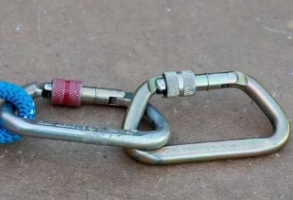事實(shí)上確實(shí)如此,因?yàn)榘踩^上的鎖閉裝置是移動(dòng)的,只要不碰到其他堅(jiān)硬的物質(zhì),就不會(huì)自由旋轉(zhuǎn),但是如果再在兩把連接好的鉤子后面懸掛上一根安全繩,繩索就處于不安全狀態(tài),一旦鉤子鎖閉功能失效,安全繩就會(huì)掉落,所以我們盡量將鉤子掛到完全鎖閉的連接環(huán)上。